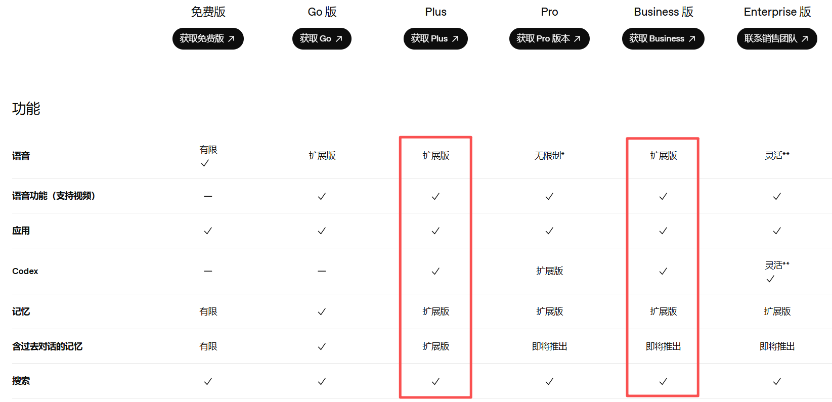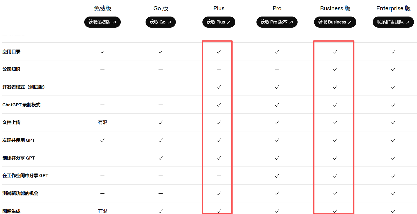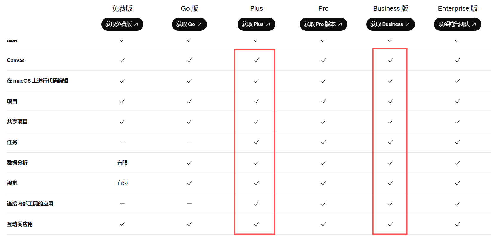 7、FAQ:Plus与Business套餐的区别: