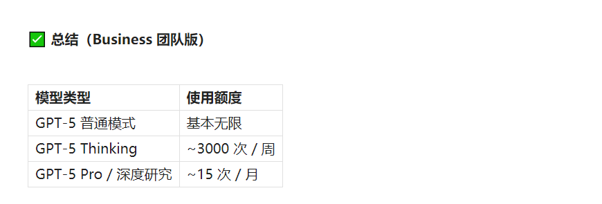 6、ChatGPT Business额度大概的额度限制如下: